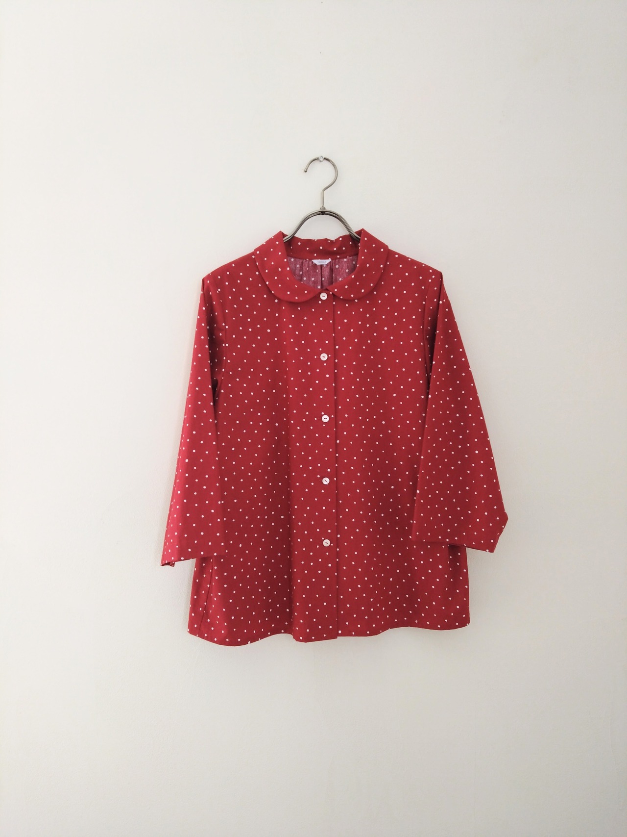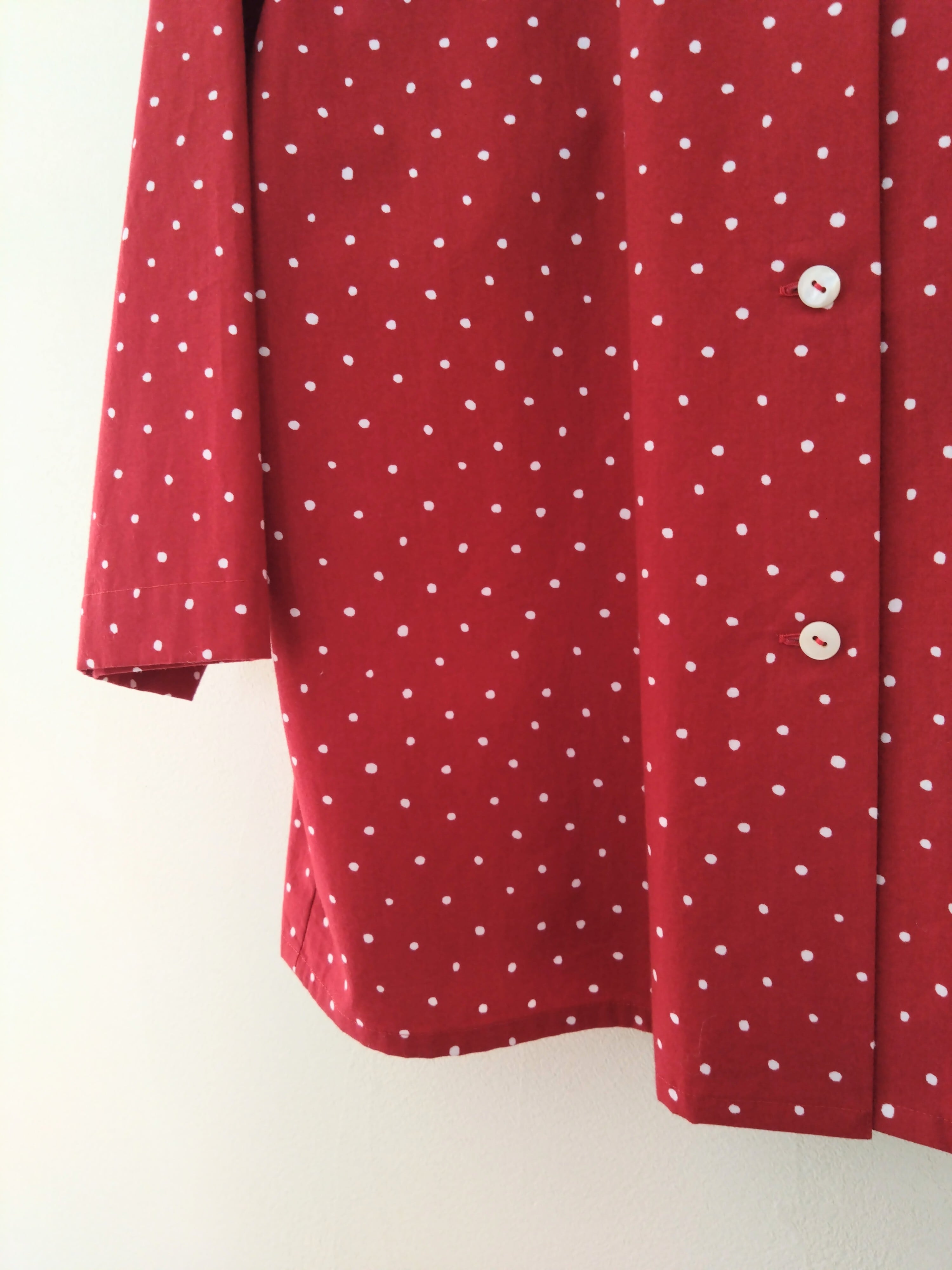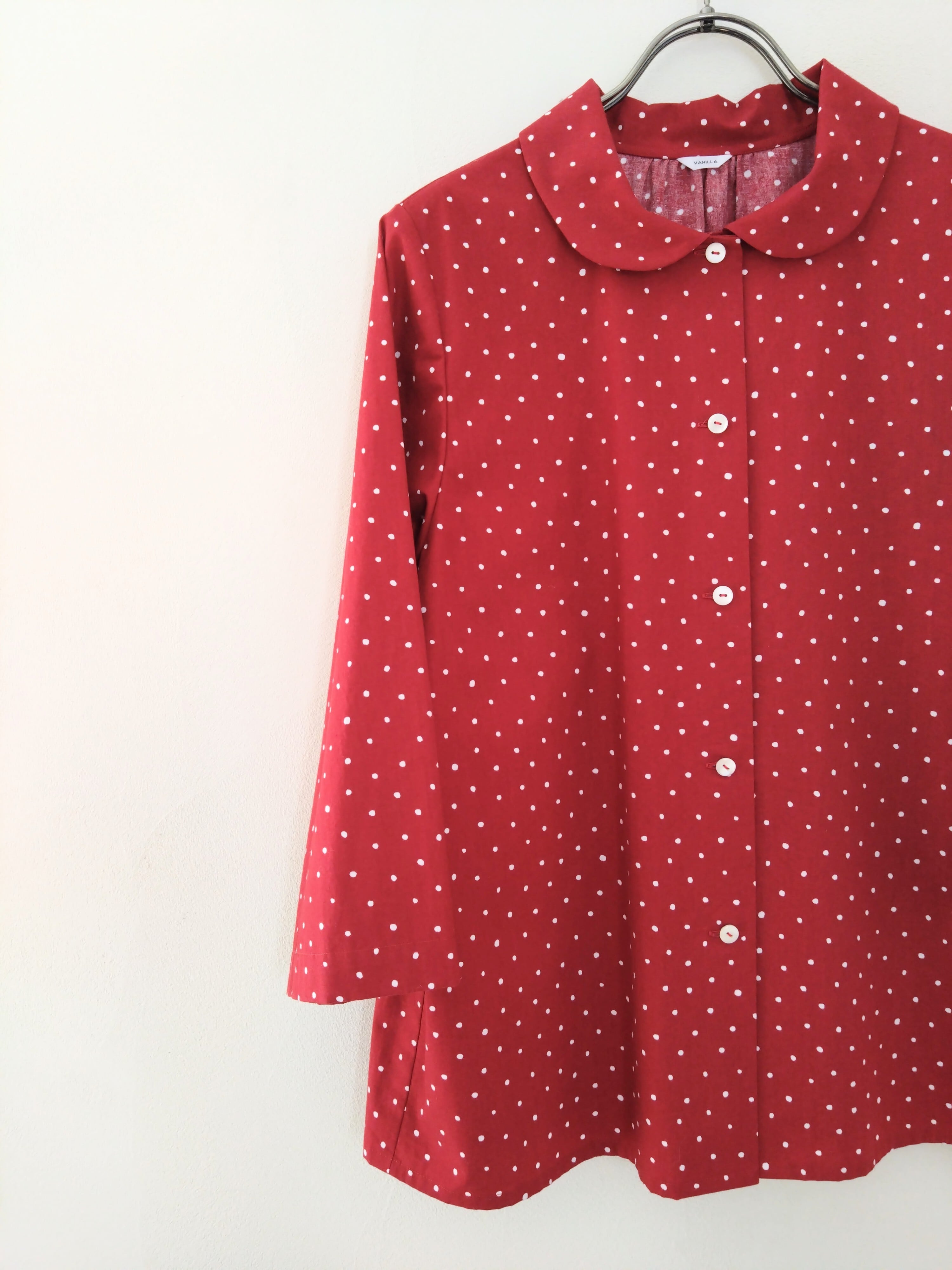 丸襟ブラウス コットンランダムドット 赤 Lサイズ