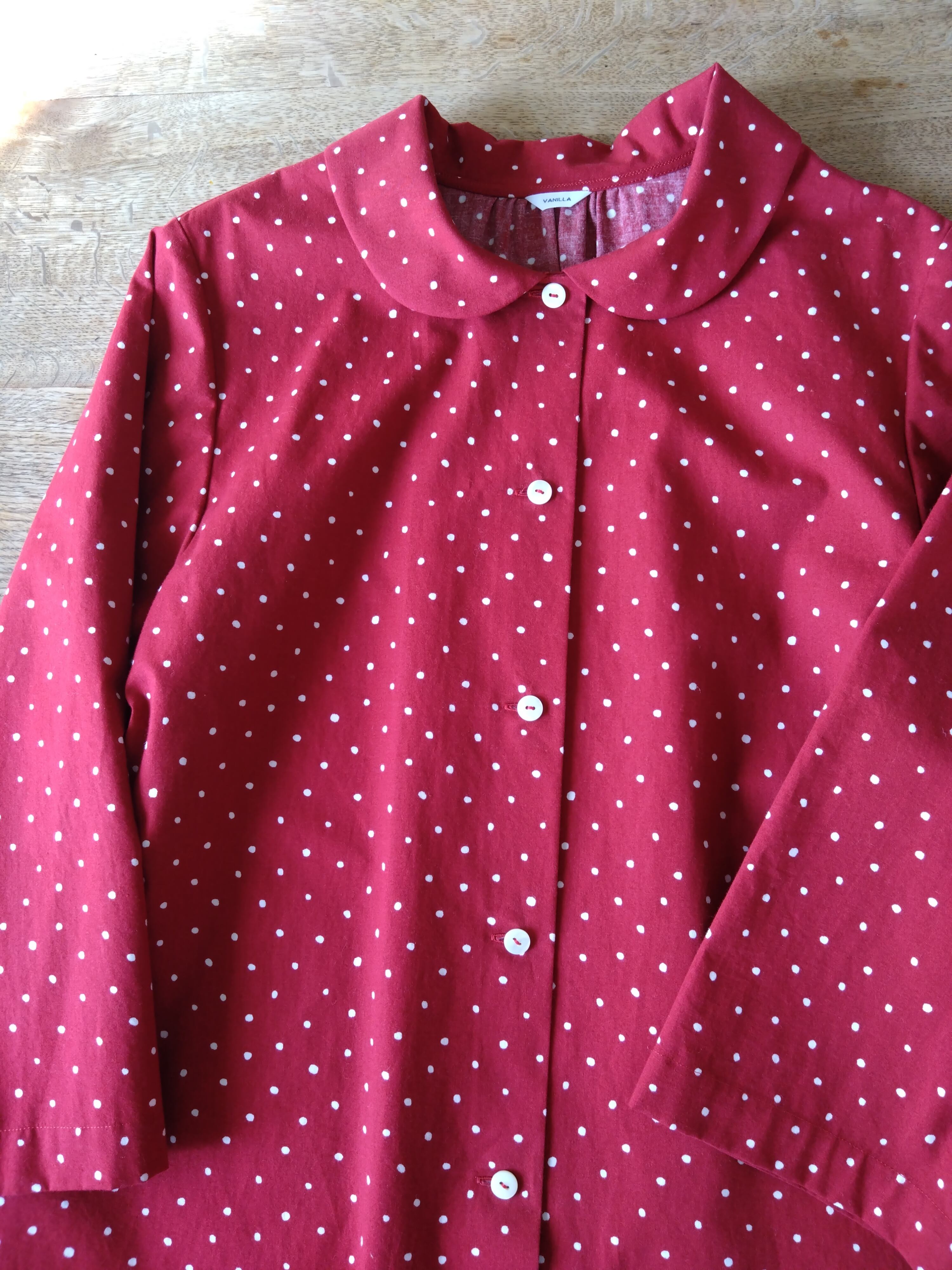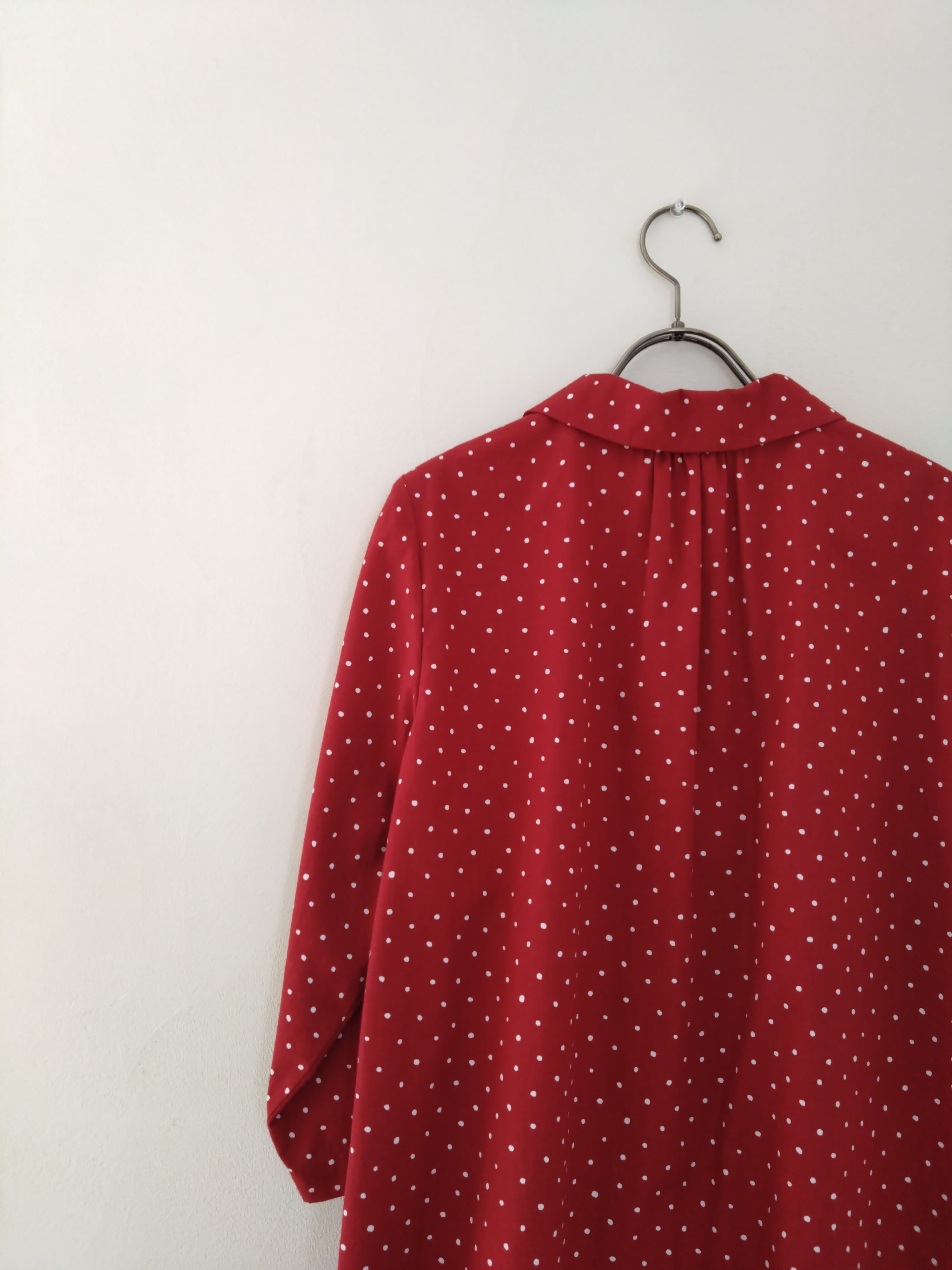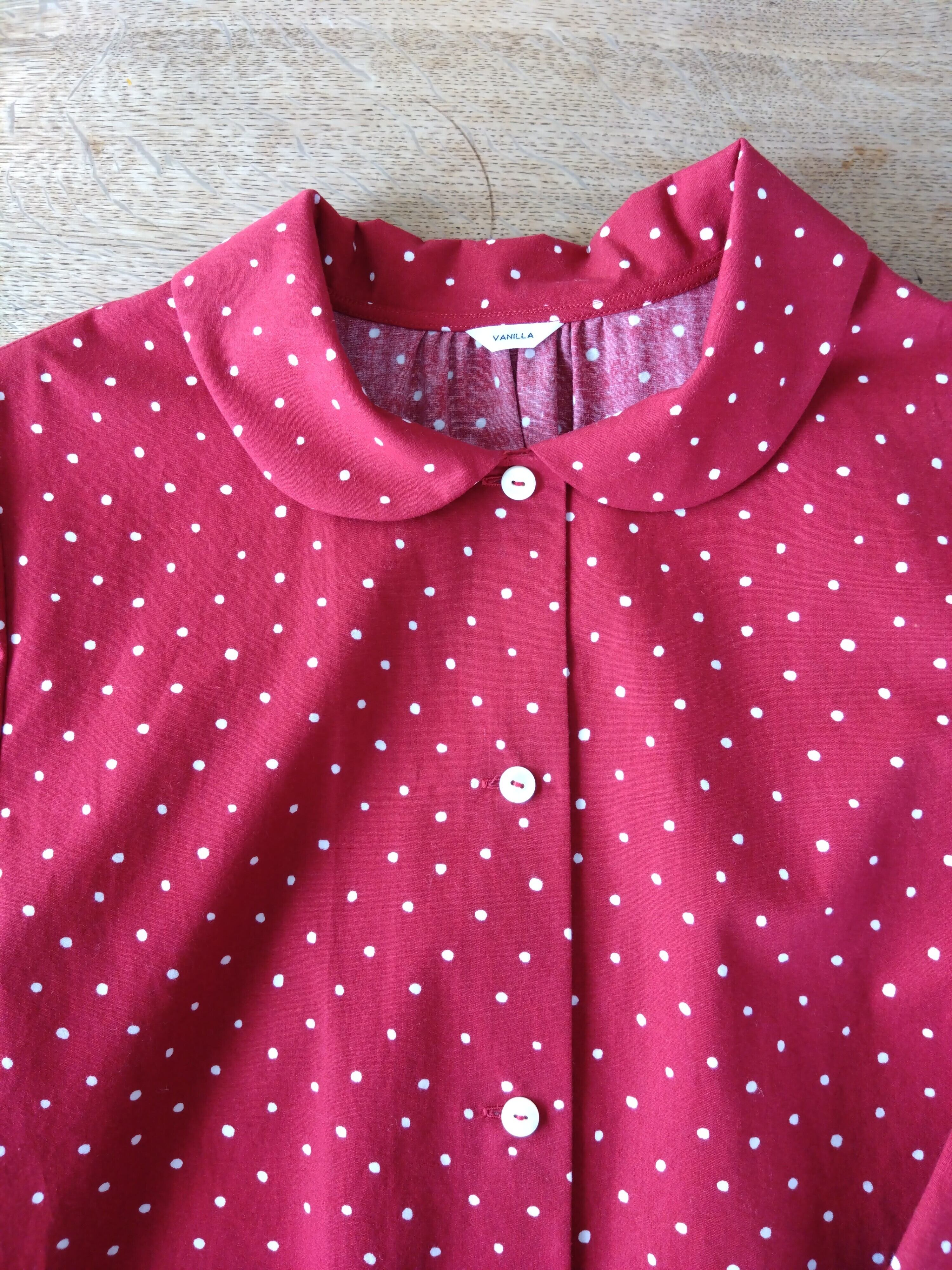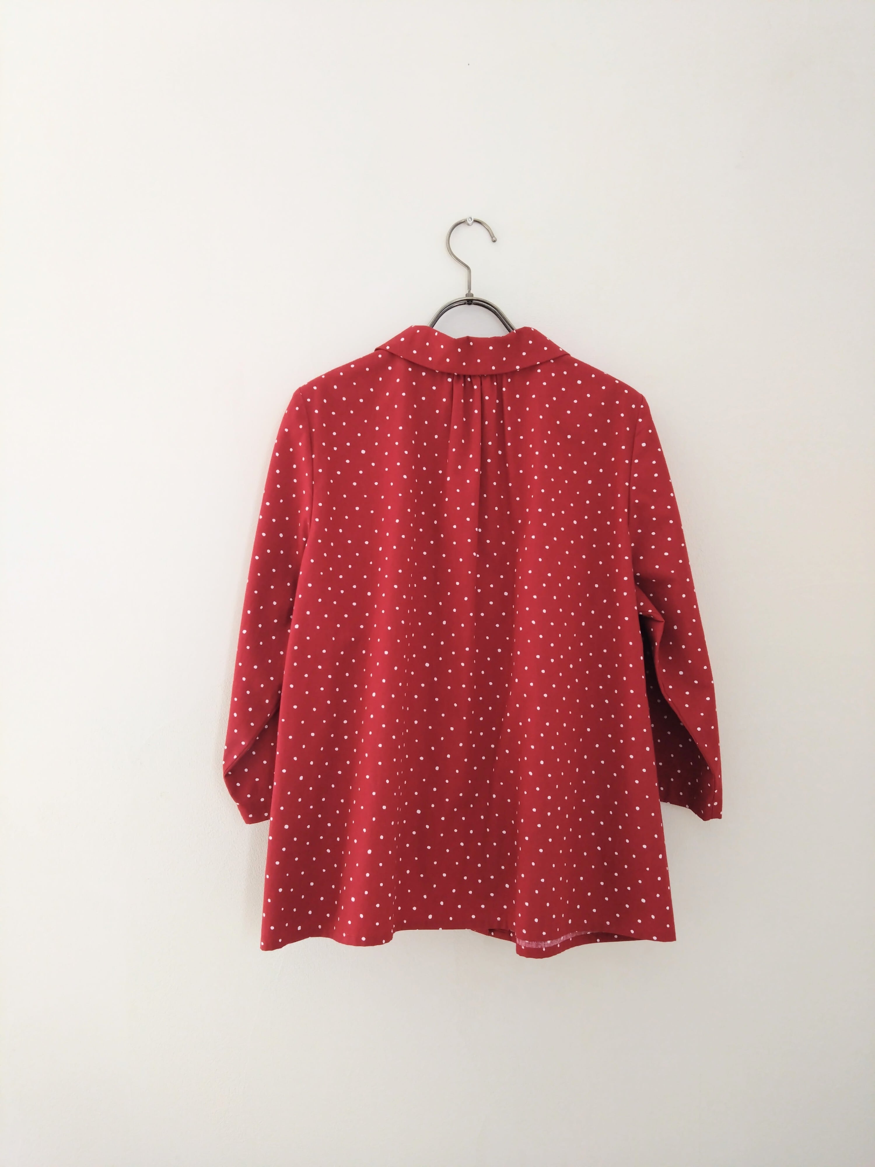 丸襟ブラウス コットンランダムドット 赤 Lサイズ