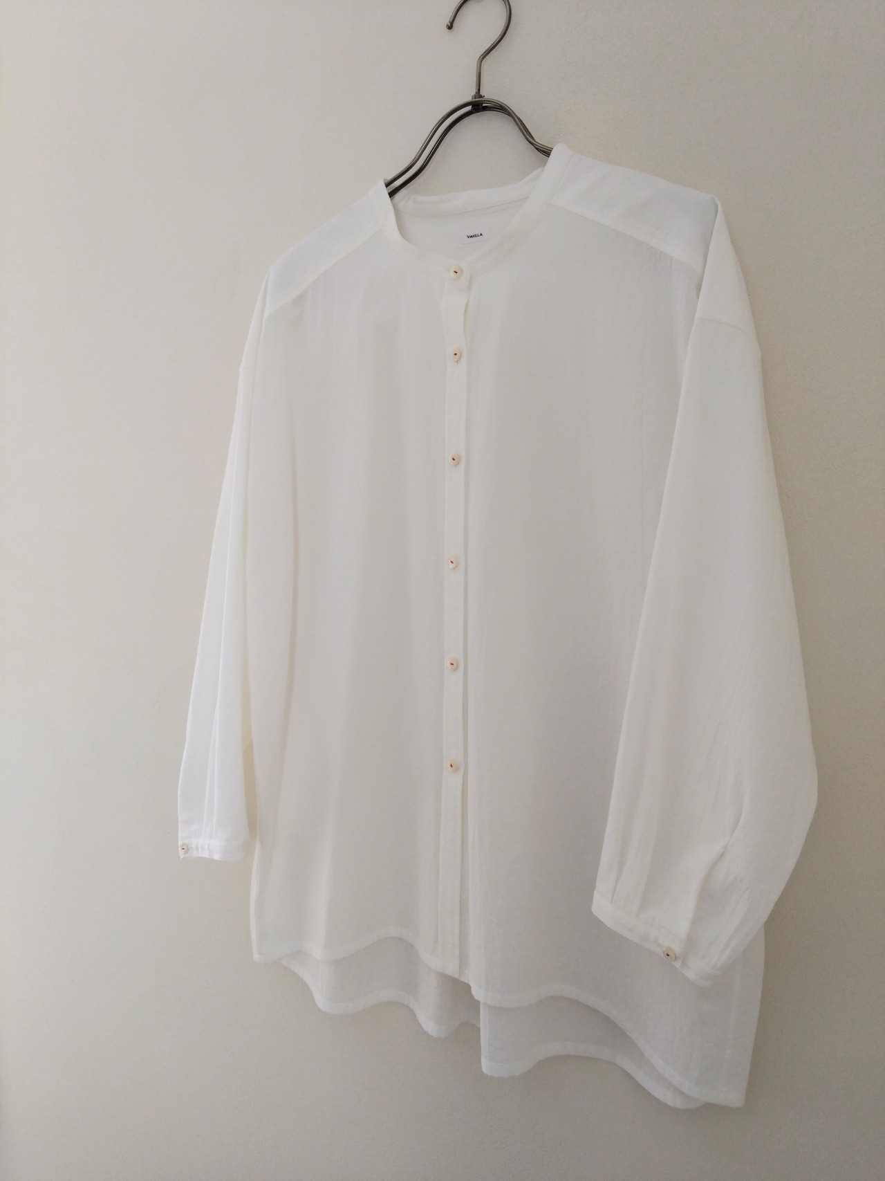 スタンドカラーワイドシャツ コットンボイルワッシャー オフホワイト フリーサイズ
