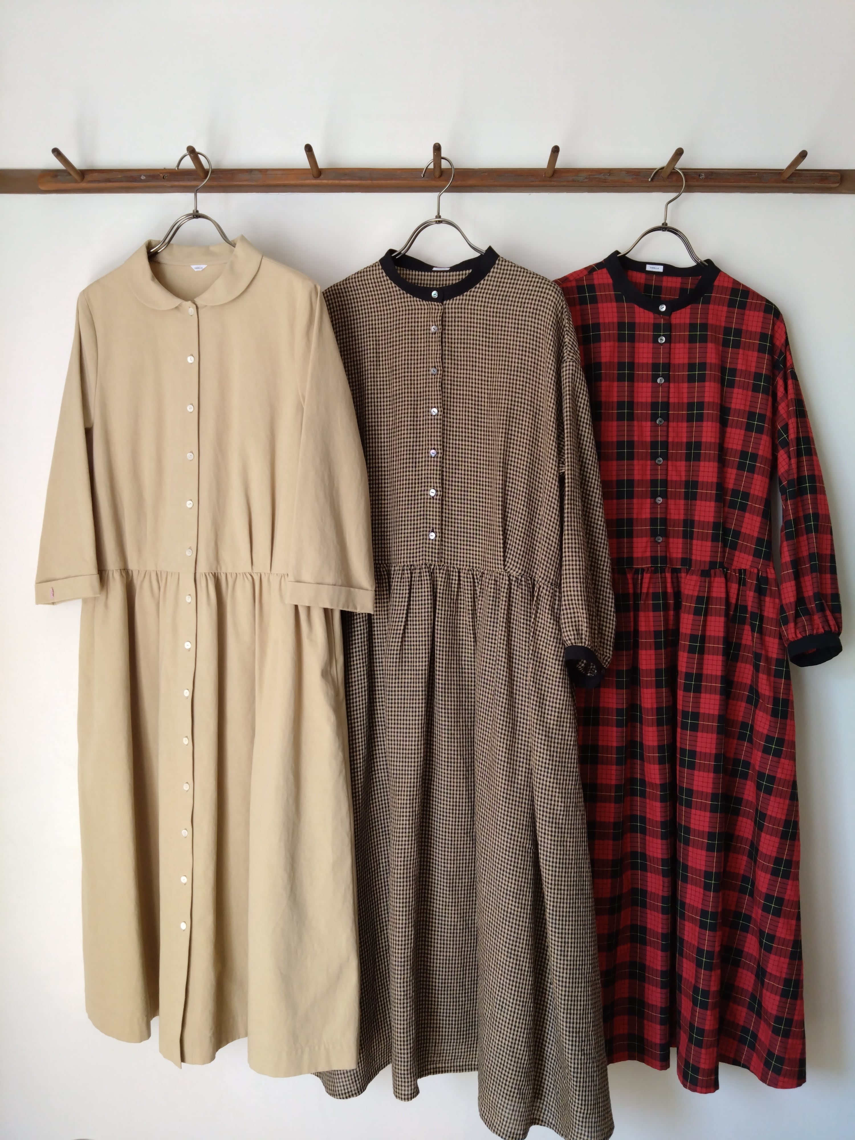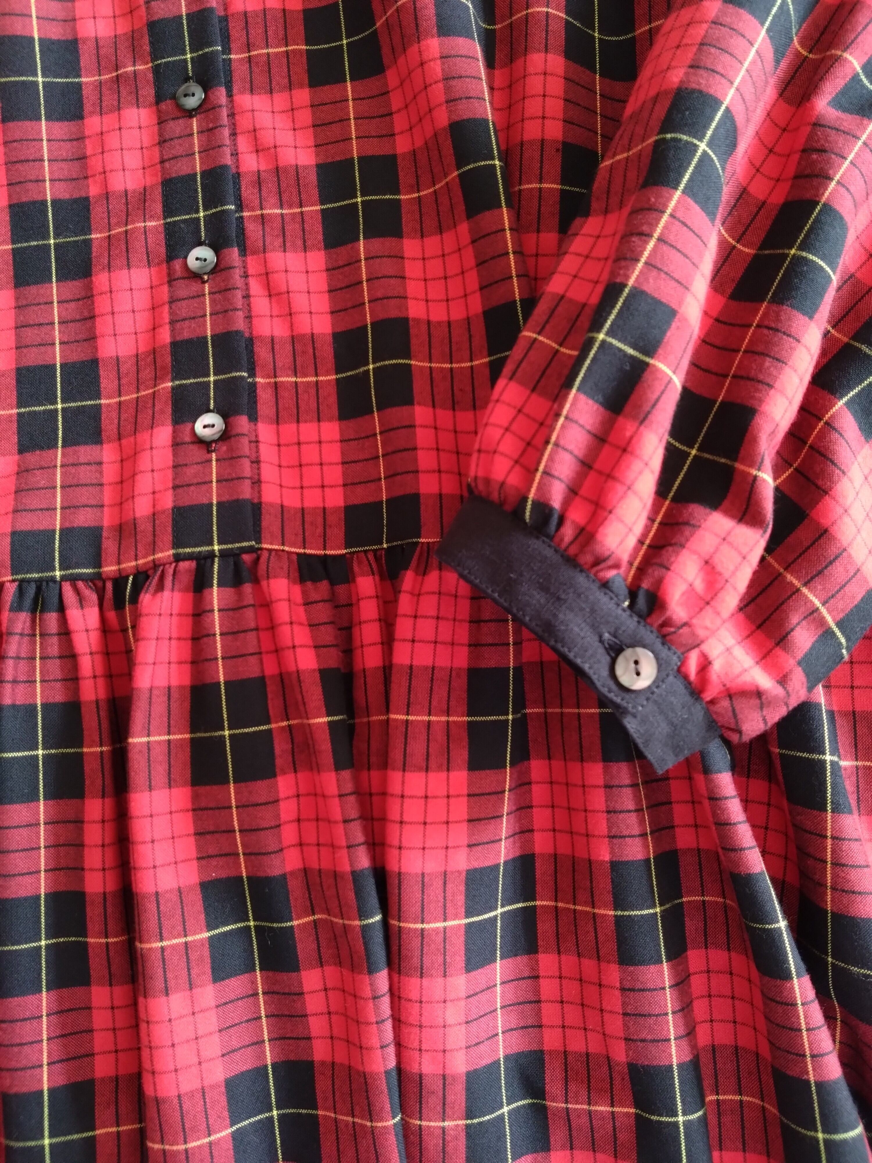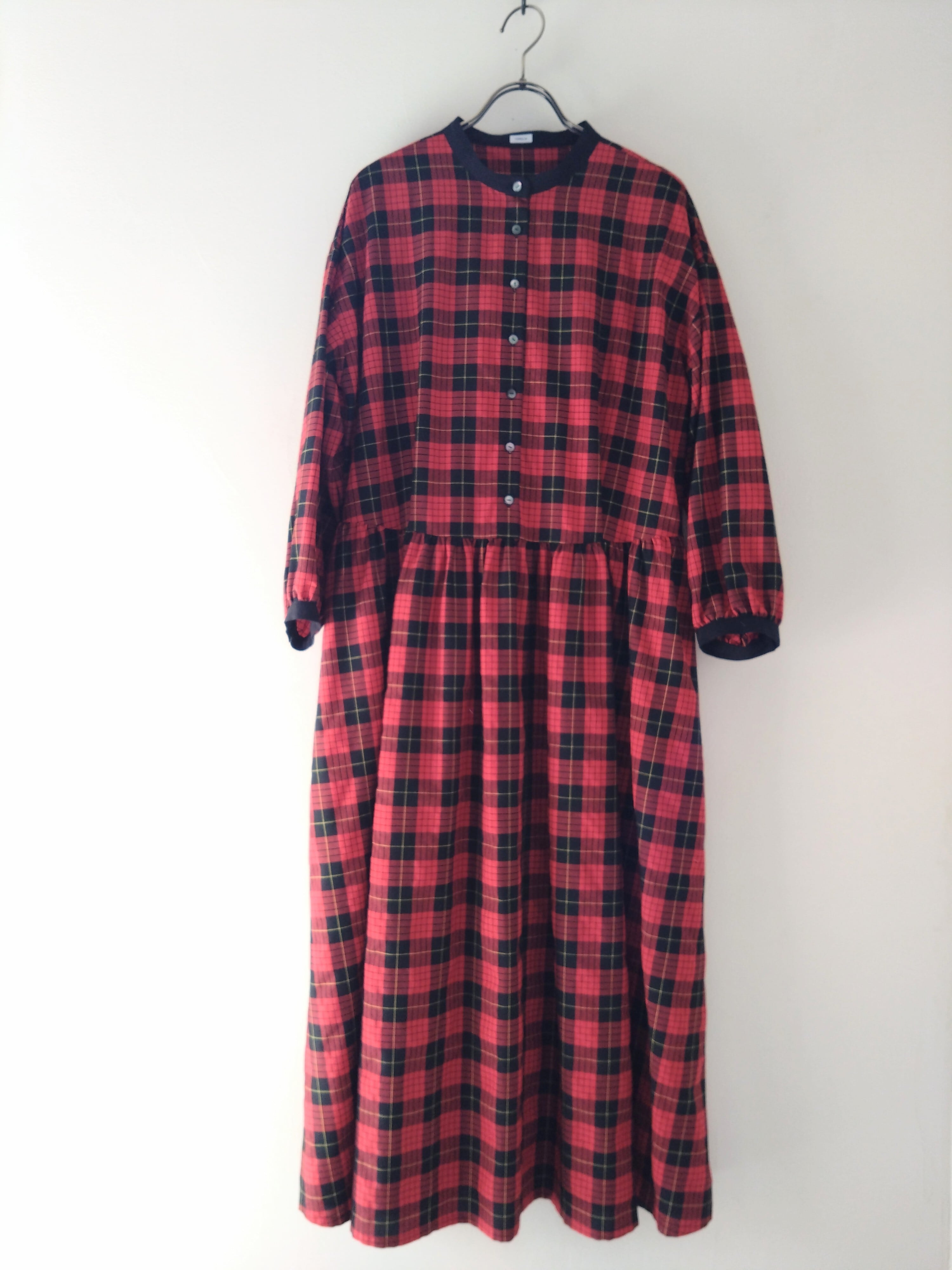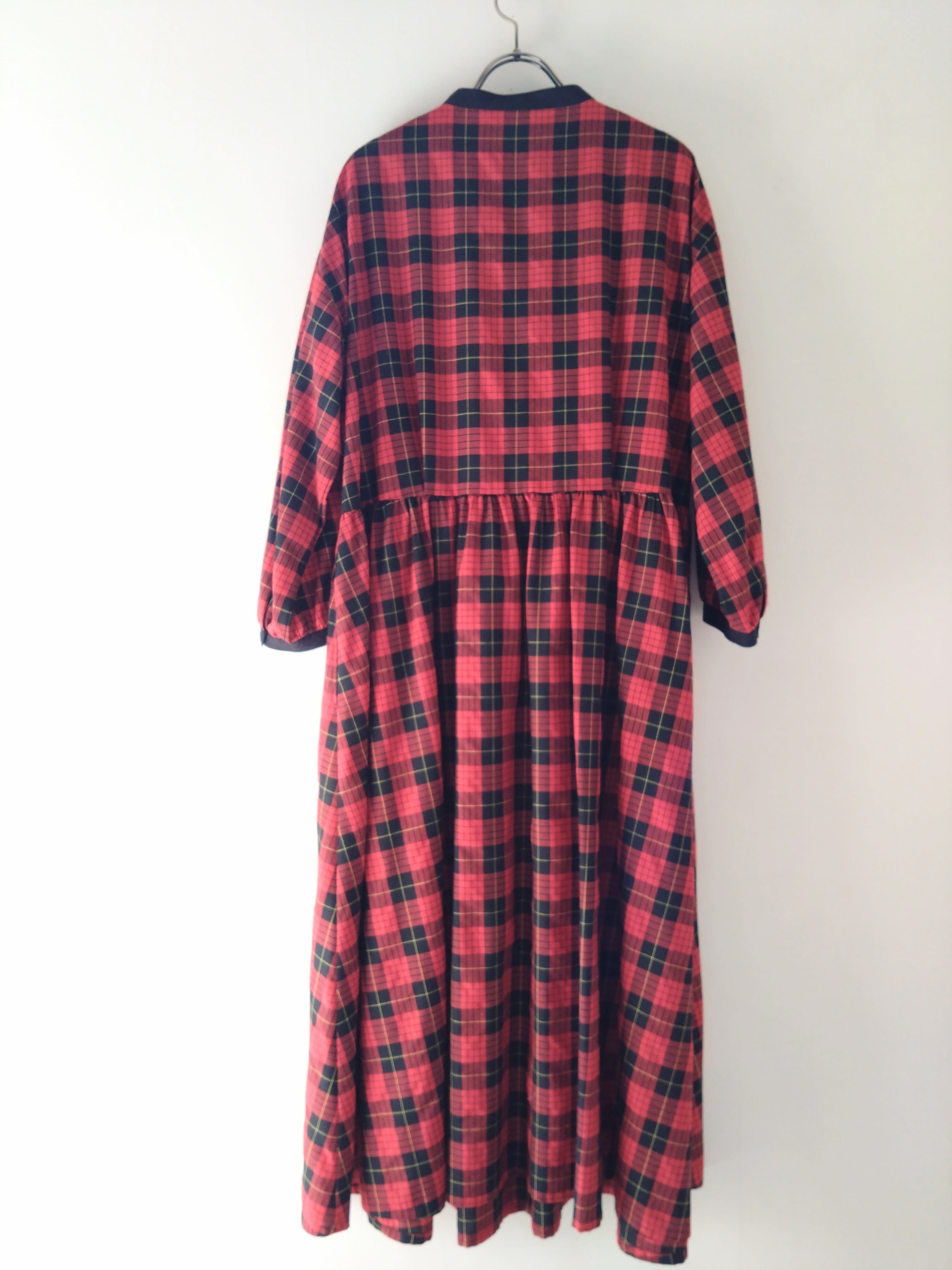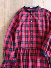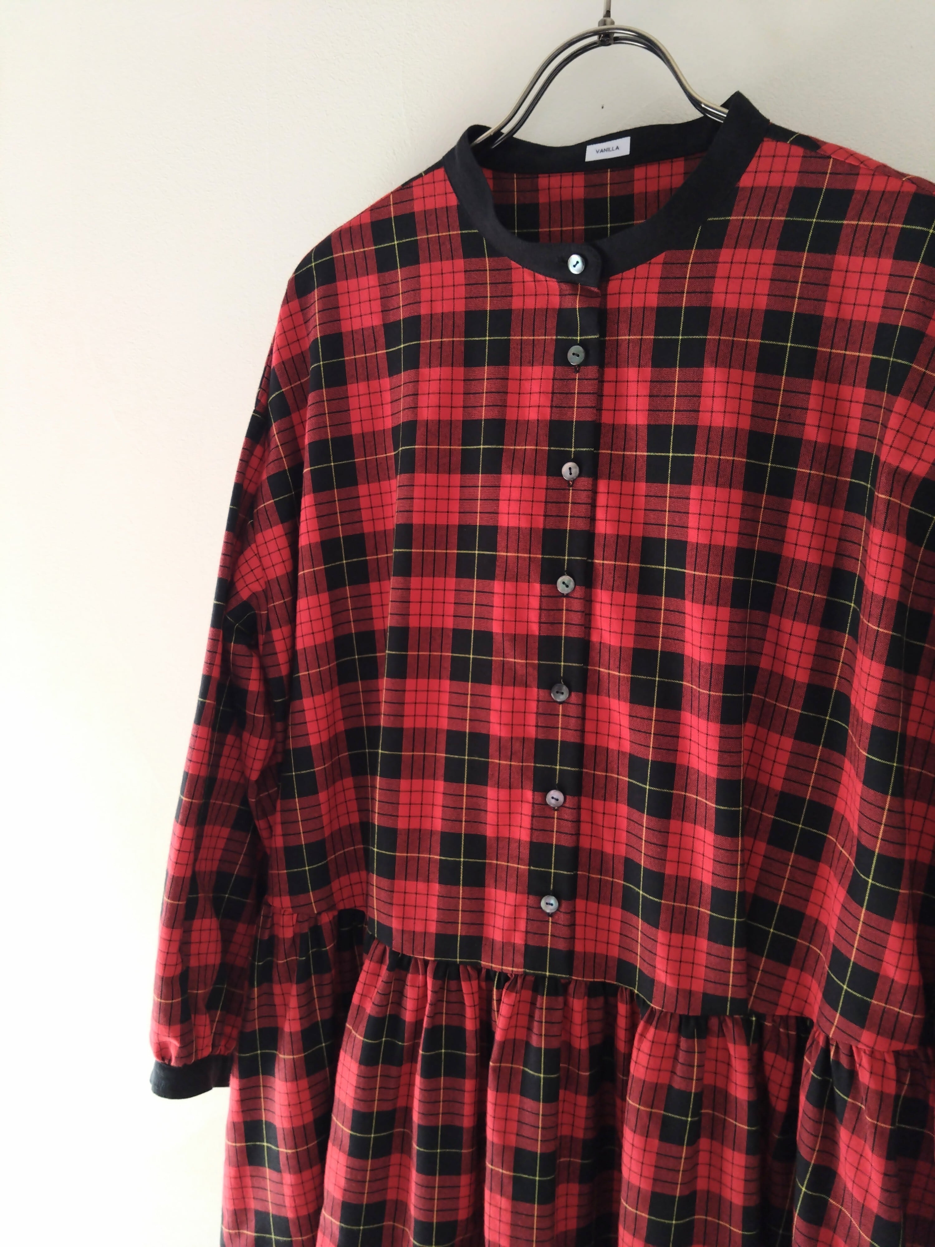 スタンドカラーチェックワンピース ポリエステルレーヨンタータンチェック フリーサイズ
